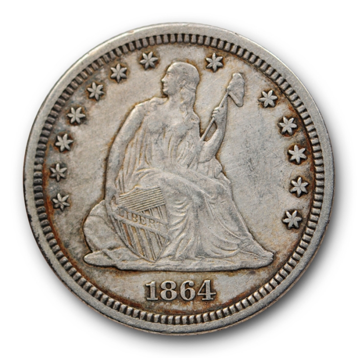 1864 25C Seated Liberty Quarter Extra Fine XF Philadelphia Mint P Tough Date