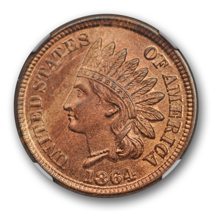 Description / 1864 1c Bronze Indian Head Cent NGC MS 64 RB Uncirculated Red Brown Attractive !