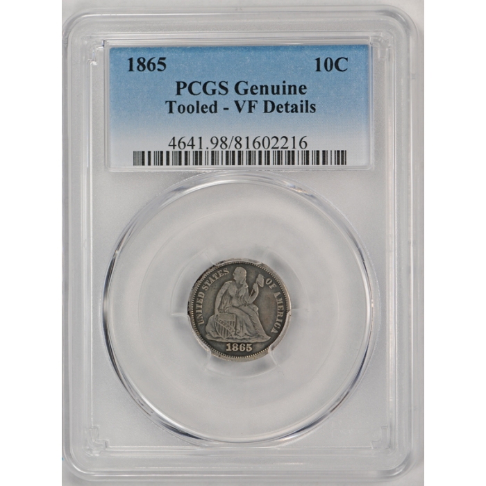 Description / 1865 10C Liberty Seated Dime PCGS Very Fine VF Details Tooled Cert2216