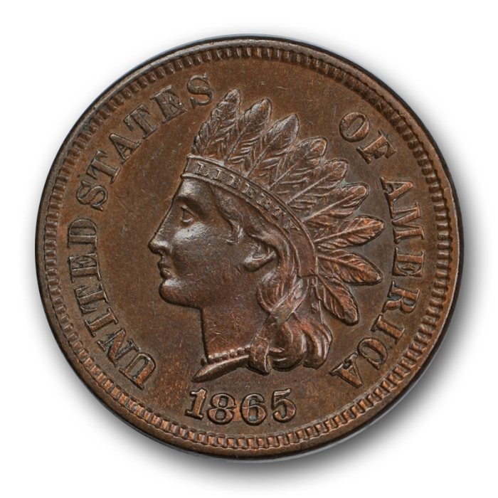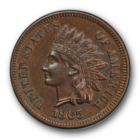 Description / 1865 1C Plain 5 RPD FS-303 S-3 Indian Cent Uncirculated Snow 3 R123