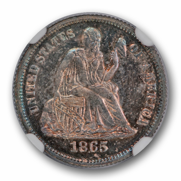 Description / 1865 Proof Seated Liberty Dime 10C NGC PR 64 Purple Toned Beauty Low Mintage
