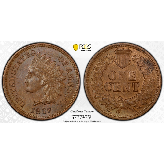Description / 1867 1C Indian Head Cent PCGS MS 62 BN Uncirculated Mint State Better Date