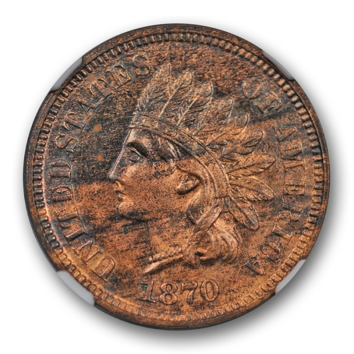 Description / 1870 Proof Indian Head Cent 1C NGC PR 62 RB Red Brown Key Date Toned