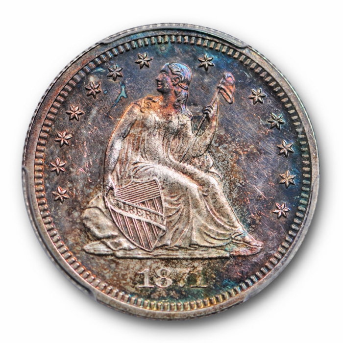 1871 25C Seated Liberty Quarter PCGS PR 63 Proof Deep Blue Toned Coin