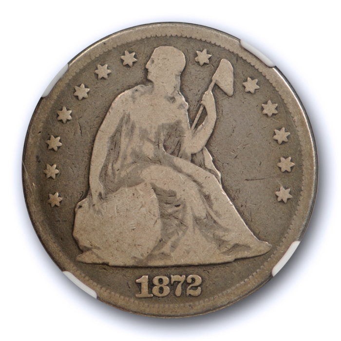 Description / 1872 $1 Seated Liberty Dollar NGC G 6 Good to Very Good Original Toned Coin