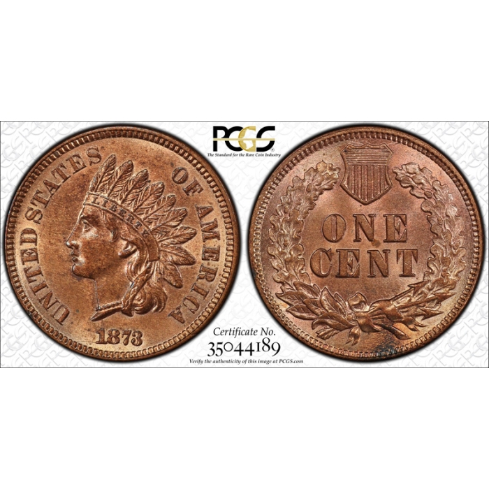 Description / 1873 1C Closed 3 Indian Head Cent PCGS MS 63 RB Uncirculated Red Brown Nice !
