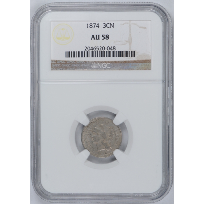 1874 Three Cent Piece 3CN NGC AU 58 Registry Set Grade Coin About Uncirculated
