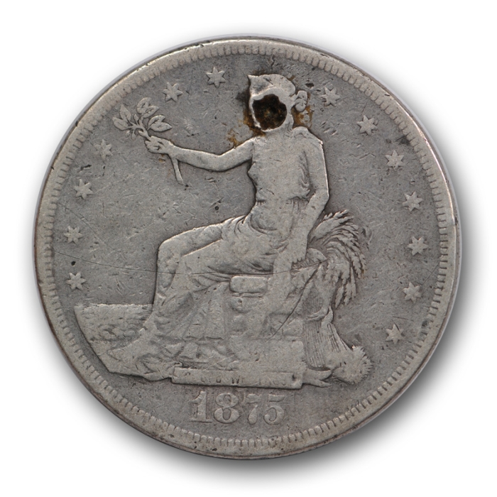 1875-CC T$1 Trade Dollar Very Good VG Carson City Holed R1524