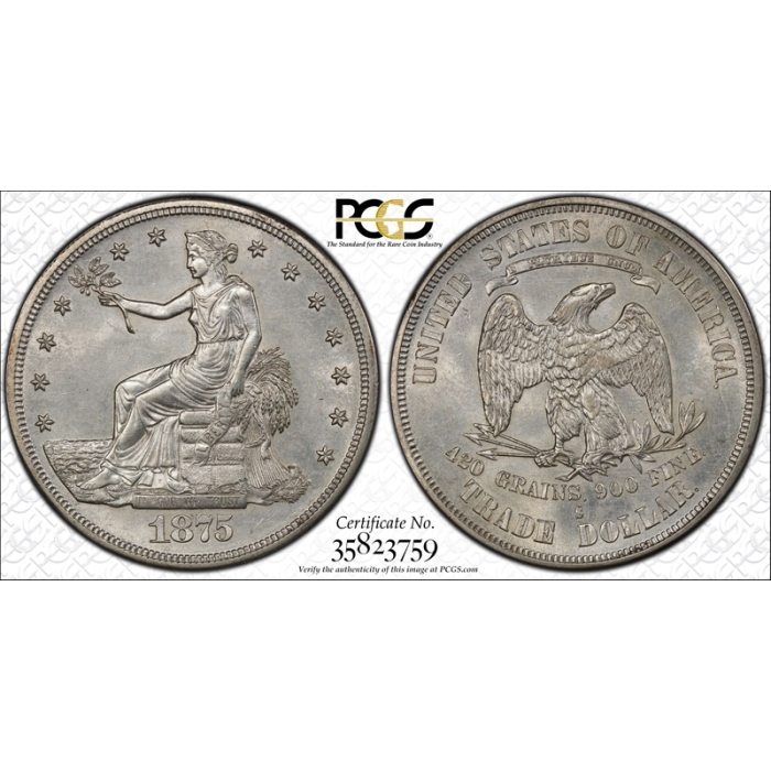 Description / 1875 S T$1 Trade Dollar PCGS AU 58 About Uncirculated Lustrous U.S Type Coin