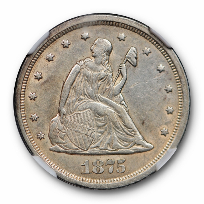 Description / 1875 S Twenty Cent Piece NGC AU 58 About Uncirculated to MS US Type Coin