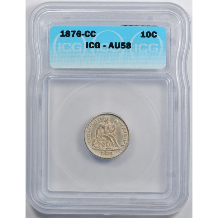1876 CC 10C Seated Liberty Dime ICG AU 58 About Uncirculated Carson City