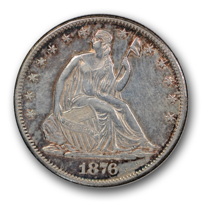 Description / 1876 CC 50C Seated Liberty Half Dollar Extra Fine to About Uncirculated R535