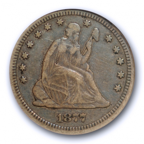 Description / 1877 CC 25C Seated Liberty Quarter ANACS VF 20 Very Fine Carson City Mint Old Holder