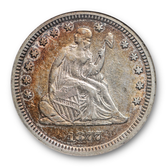 Description / 1877 CC 25C Seated Liberty Quarter ANACS EF 40 Extra Fine XF Carson City