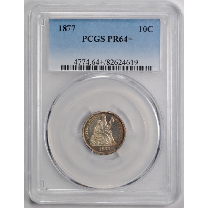 Description / 1877 Proof Liberty Seated Dime PCGS PR 64+ Toned Beauty Low Mintage