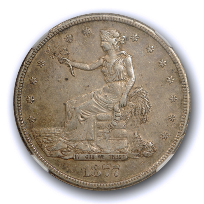 Description / 1877 S $1 Trade Dollar NGC AU 55 About Uncirculated to Mint State Original Toned