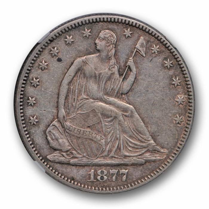 Description / 1877 Seated Liberty Half Dollar NGC XF 45 Extra Fine to AU US Type Coin