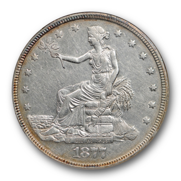 Description / 1877 T$1 Trade Dollar ANACS AU 50 About Uncirculated Old Holder US Type Coin