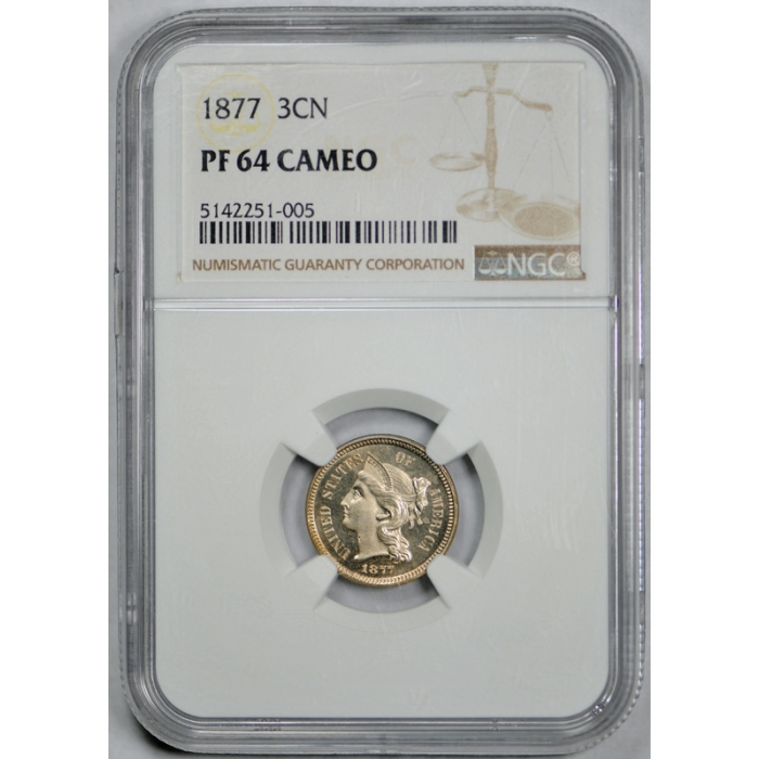 1877 Three Cent Piece NGC PF 64 Cameo Proof Key Date Flashy Coin !