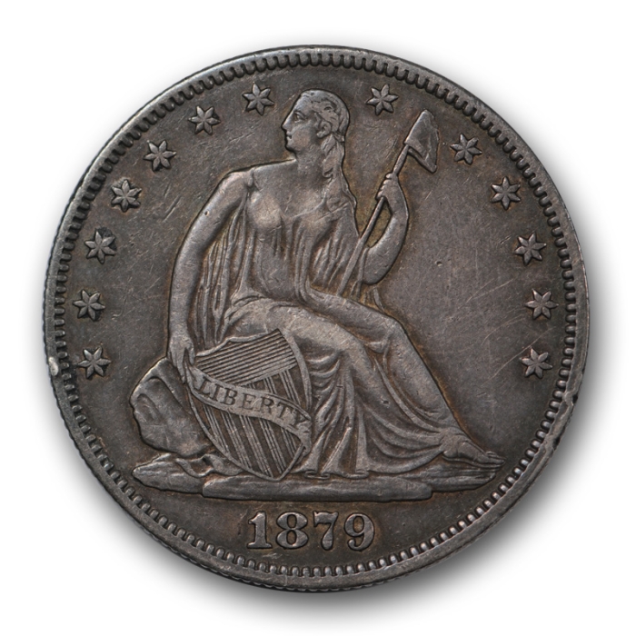 Description / 1879 50C Liberty Seated Half Dollar Extra Fine XF Full Liberty R421
