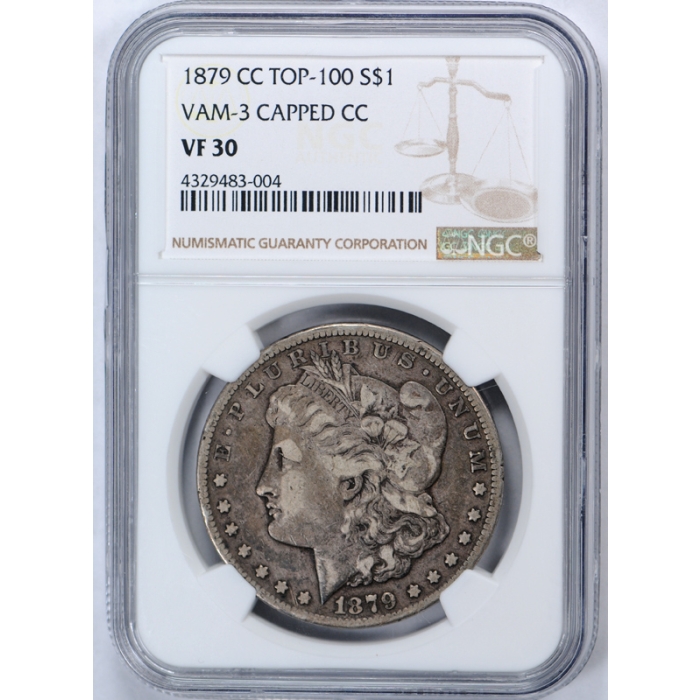 1879-CC Top 100 Morgan Dollar VAM-3 Capped CC S$1 NGC VF 30 Very Fine to XF