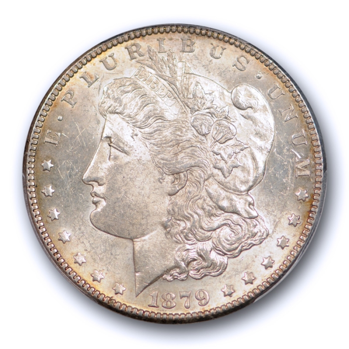Description / 1879 S $1 Reverse of 1878 Morgan Dollar PCGS MS 62 Uncirculated Rev of 78 Variety Coin