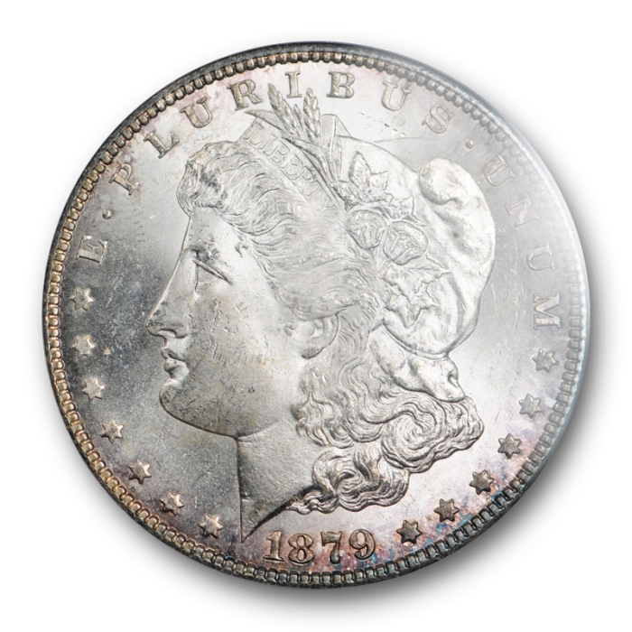 This San Francisco Mint date in general is extremely common with a huge mintage of 9,110,000. However, of this mintage the PCGS Coin Facts estimates only 8,900 have survived today that are this 1879 S Reverse of 1878 variety. This coin is one of only 614 graded Mint State 64 by PCGS.