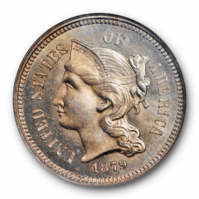 Description / 1879 Three Cent Piece NGC PF 66 Cameo Proof PR CAM Low Mintage Toned