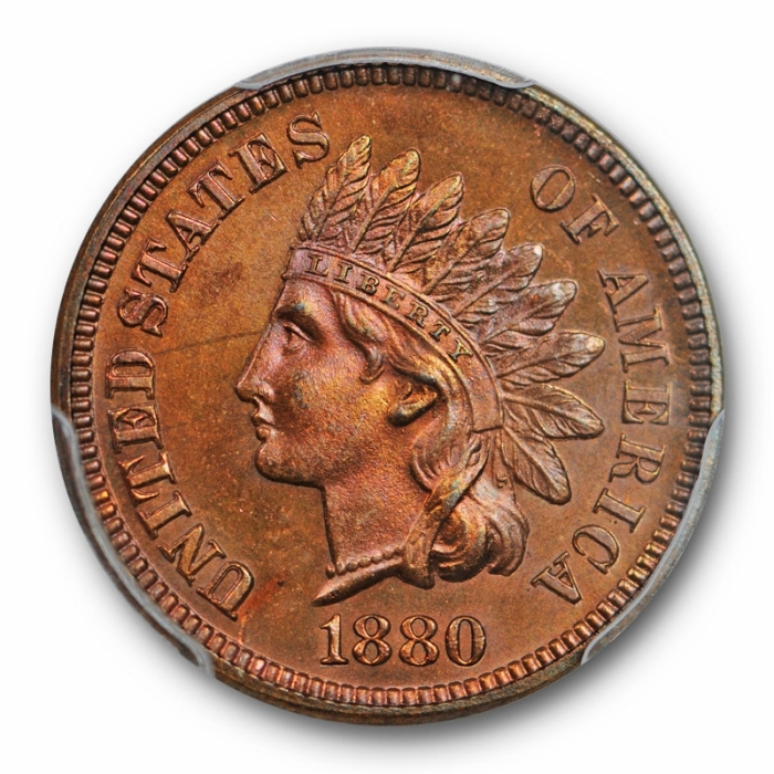 Description / 1880 1C Indian Head Cent Proof PCGS PR 64 RB Red Brown Low Mintage Toned