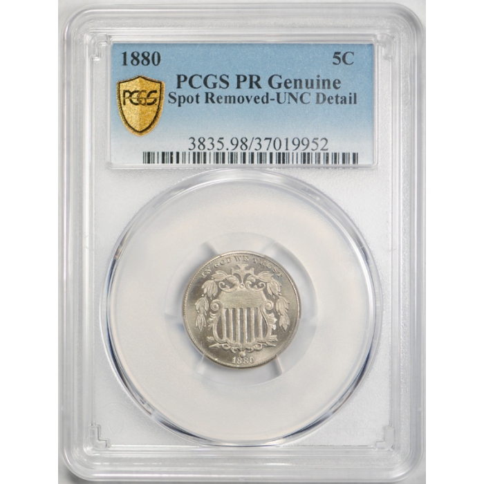 1880 5C Proof Shield Nickel PCGS PR Uncirculated Details Key Date Tough Coin !