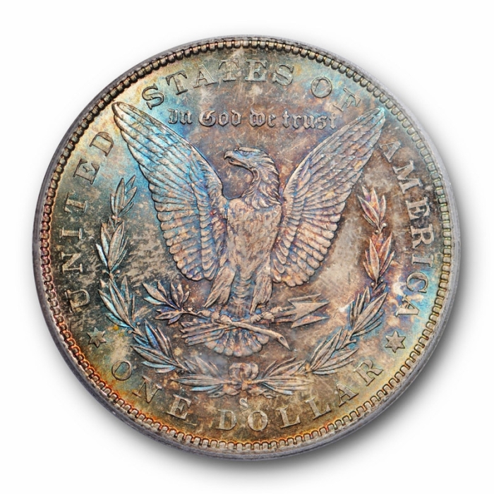 Description / 1880-S $1 Morgan Dollar PCGS MS 65 PL Proof Like Purple Blue Toned Beauty Cert9005
