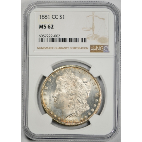 Description / 1881 CC $1 Morgan Dollar NGC MS 62 Uncirculated Carson City Mint Original Toned
