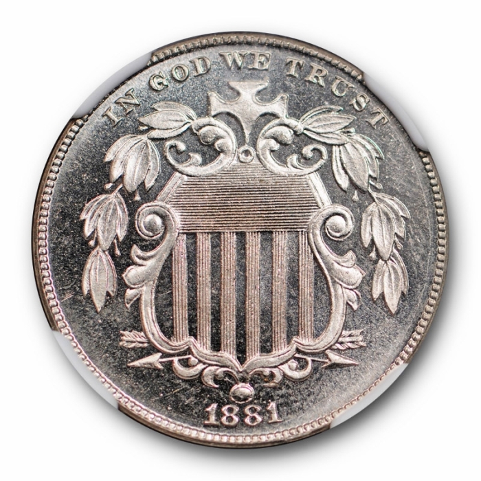 Description / 1881 Shield Nickel 5C NGC PR 64 CAM Proof Cameo Key Date