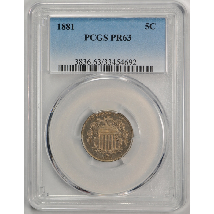 1881 Shield Nickel PCGS PR 63 Proof 5c Key Date US Coin Tough Cert4692