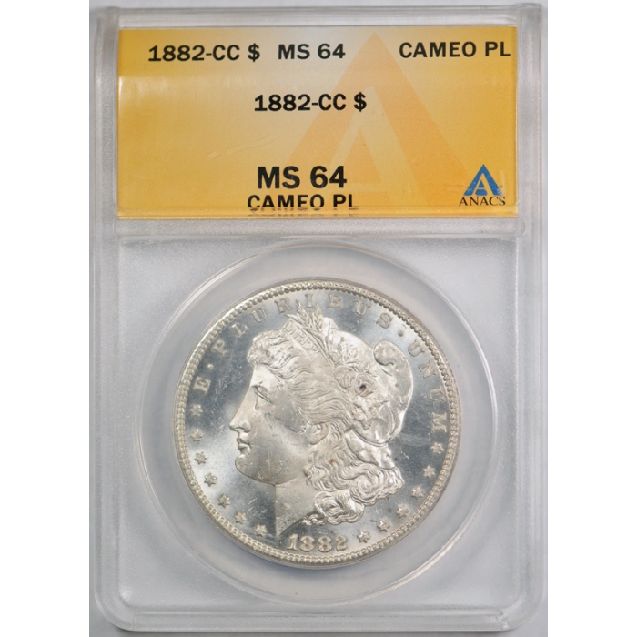 Description / 1882 CC $1 Morgan Dollar ANACS MS 64 PL Uncirculated Proof Like Carson City Mint