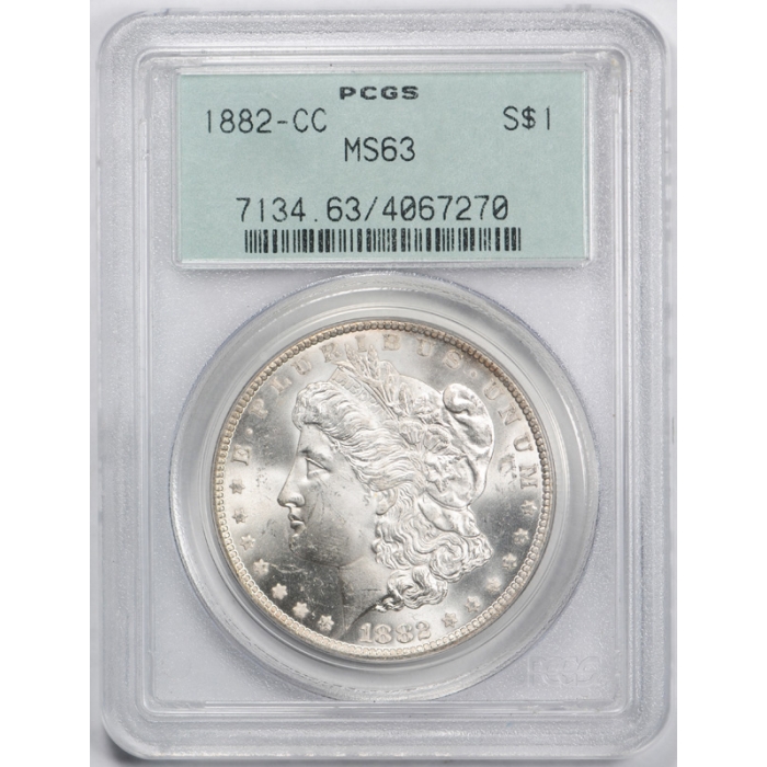 Description / 1882 CC $1 Morgan Dollar PCGS MS 63 Uncirculated Carson City OGH Old Holder Cert#7270