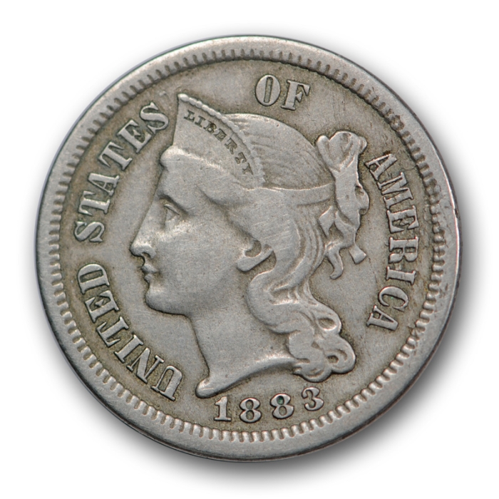 1883 3CN Three Cent Nickel Extra Fine XF Business Strike Damaged R147