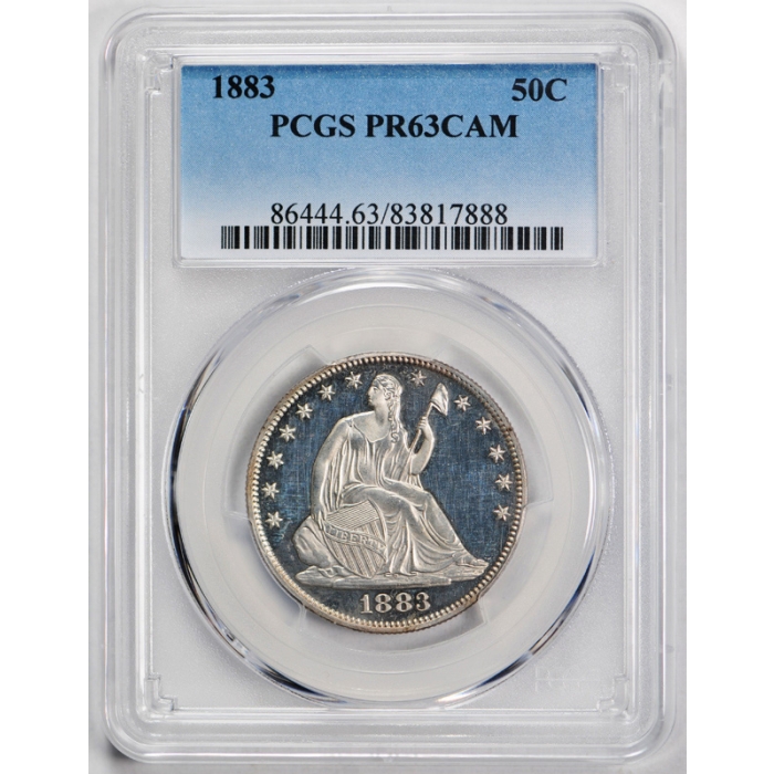 Description / 1883 50C Liberty Seated Half Dollar PCGS PR 63 CAM Proof Cameo Stunning