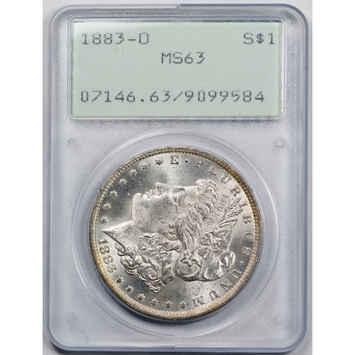 Description / 1883 O $1 Morgan Dollar PCGS MS 63 First Generation Rattler Holder Cert#9584