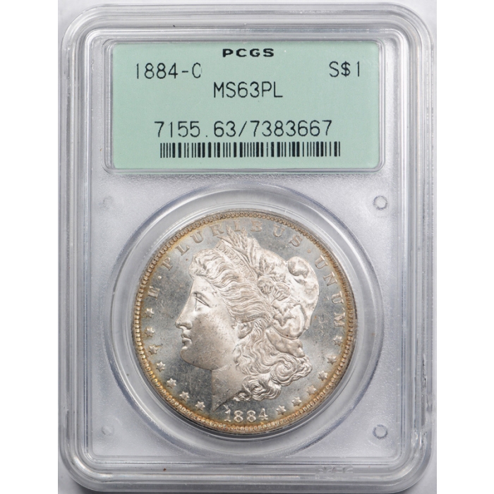 Description / 1884 O $1 Morgan Dollar PCGS MS 63 PL Proof Like OGH Undergraded Cert#67