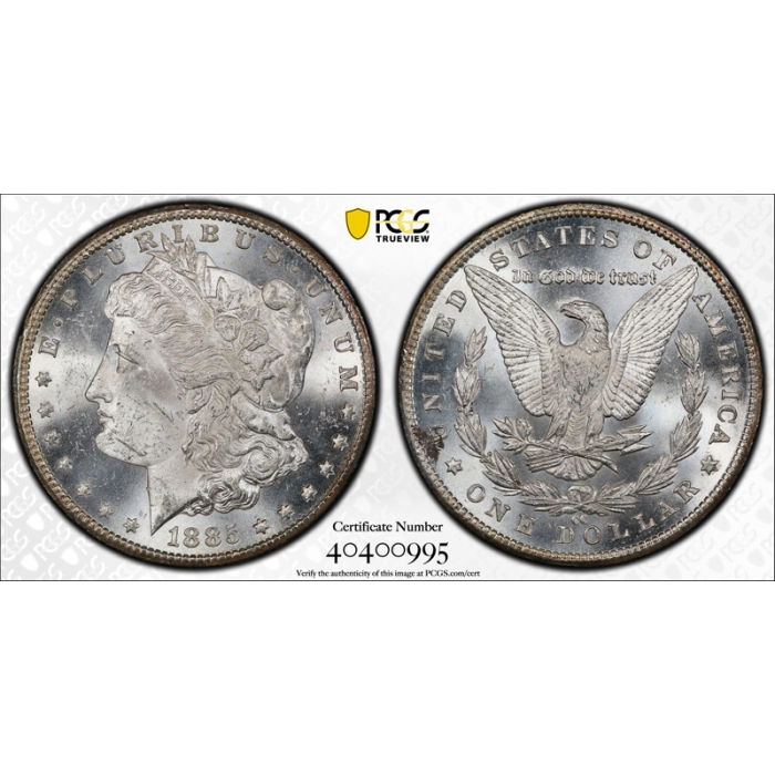 Description / 1885 CC $1 Morgan Dollar PCGS MS 62 Uncirculated Carson City Mint Cert#0995