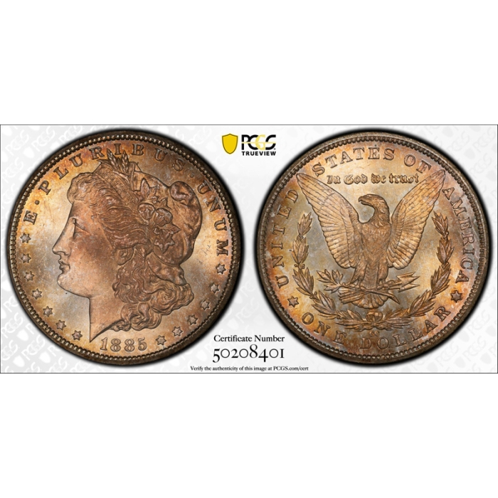 Description / 1885 CC $1 Morgan Dollar PCGS MS 66 Uncirculated Carson City Mint Toned Beauty Pretty !