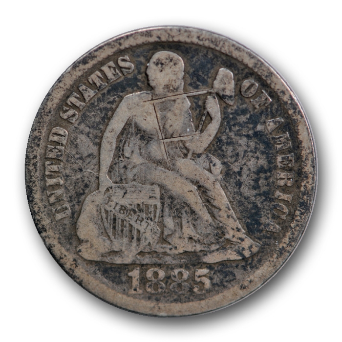 1885-S 10C Liberty Seated Dime About Good AG Weak S Mint Mark R196
