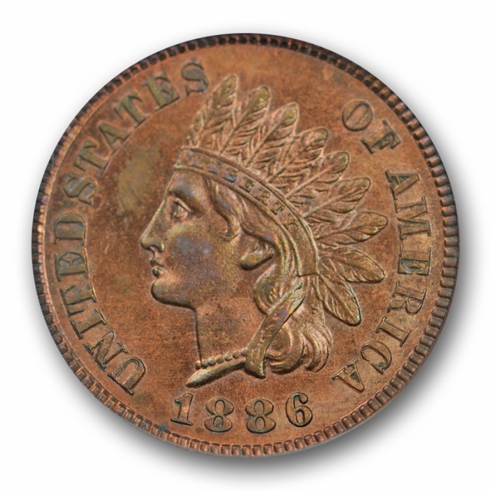 Description / 1886 1C Proof Indian Head Cent ICG PR 63 BN Brown Variety 1 Type 1 Proof