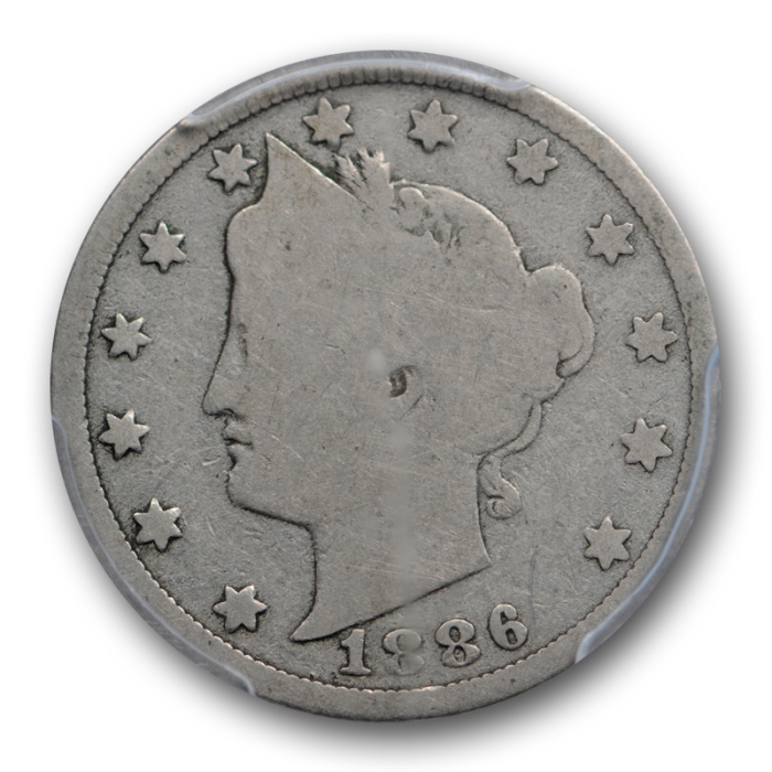 Description / 1886 5C Liberty Head Nickel PCGS G 4 Good Key Date Original Cert#8444