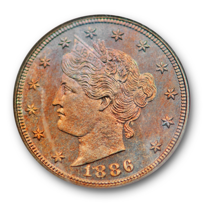 1886 Liberty Head Nickel 5c NGC PF 65 Proof Low Mintage Key Date Toned