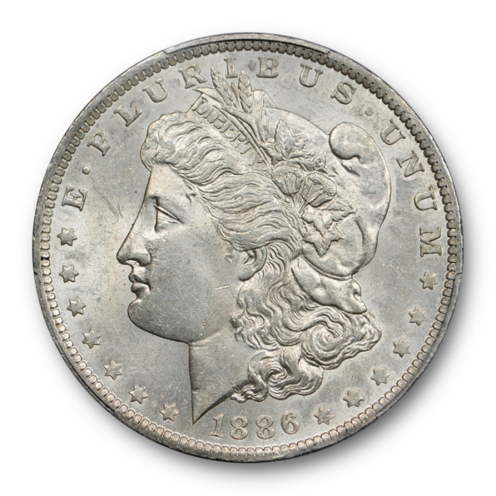Description / 1886 O $1 Morgan Dollar PCGS MS 62 Uncirculated New Orleans Sharp Strike Cert#3686