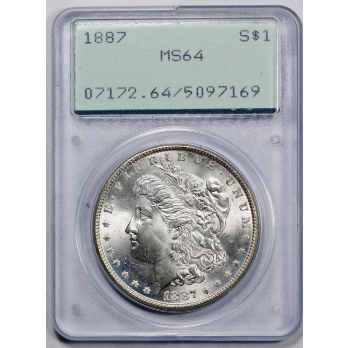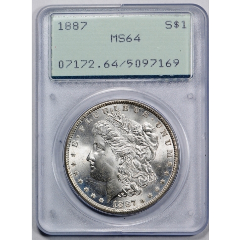 1887 $1 Morgan Dollar PCGS MS 64 Uncirculated Rattler Cert#7169