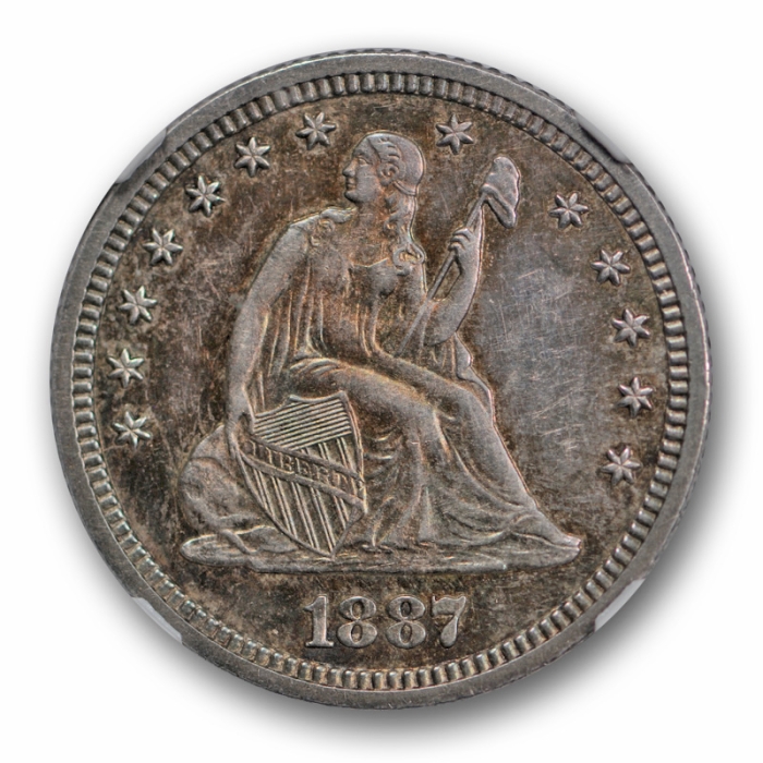 Description / 1887 Seated Liberty Quarter 25C NGC PR 61 Proof Low Mintage Key Date