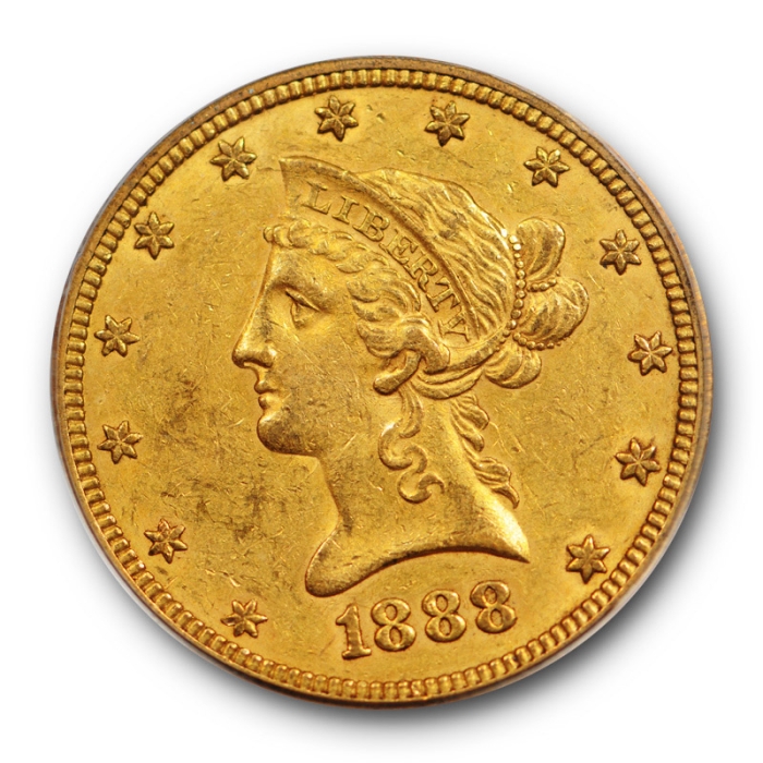 Description / 1888 O $10 Liberty Head Eagle PCGS AU50 CAC Gold Sticker Exceeded